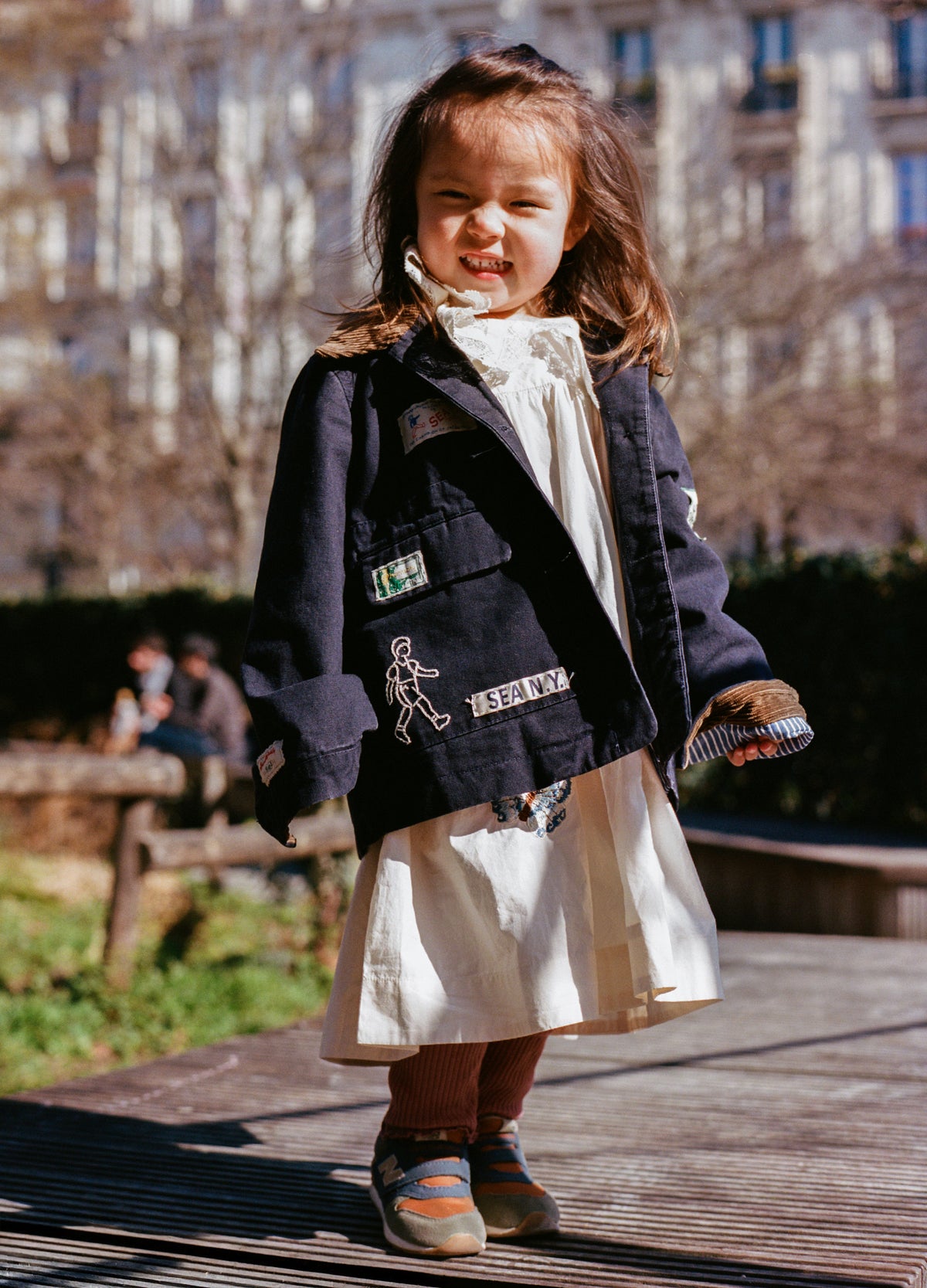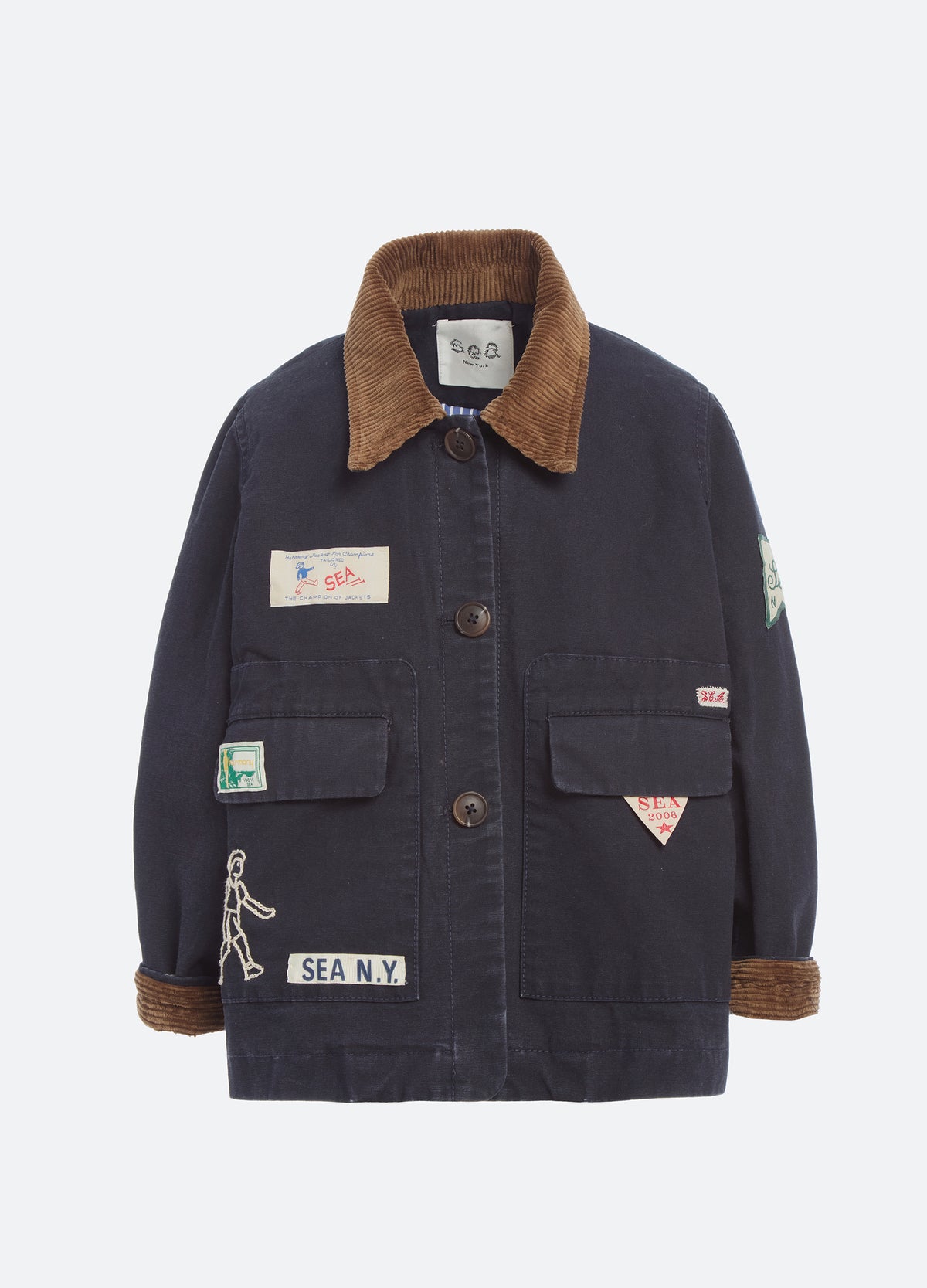 The Carolyn kids workwear jacket features corduroy accents, custom 'Sea' labels and embroidered detailing. Part of our mommy & me coordinating collection. Due to the garment dye process, color variation may occur. No two are exactly alike.