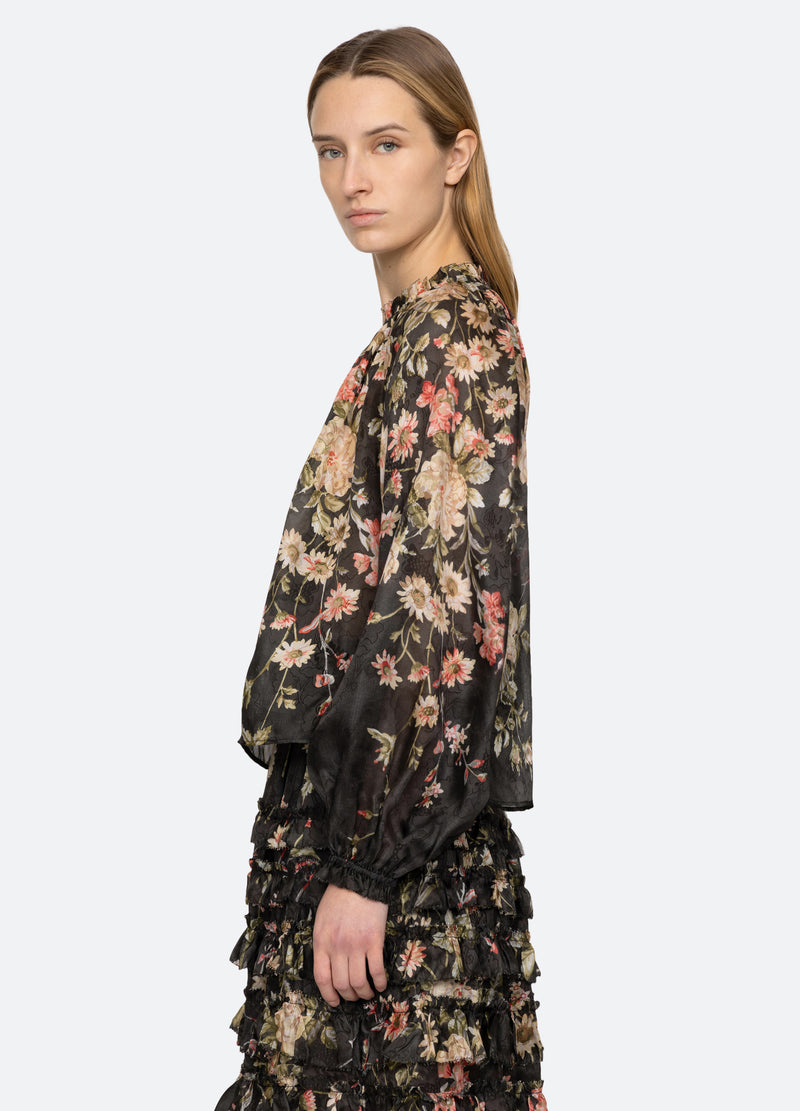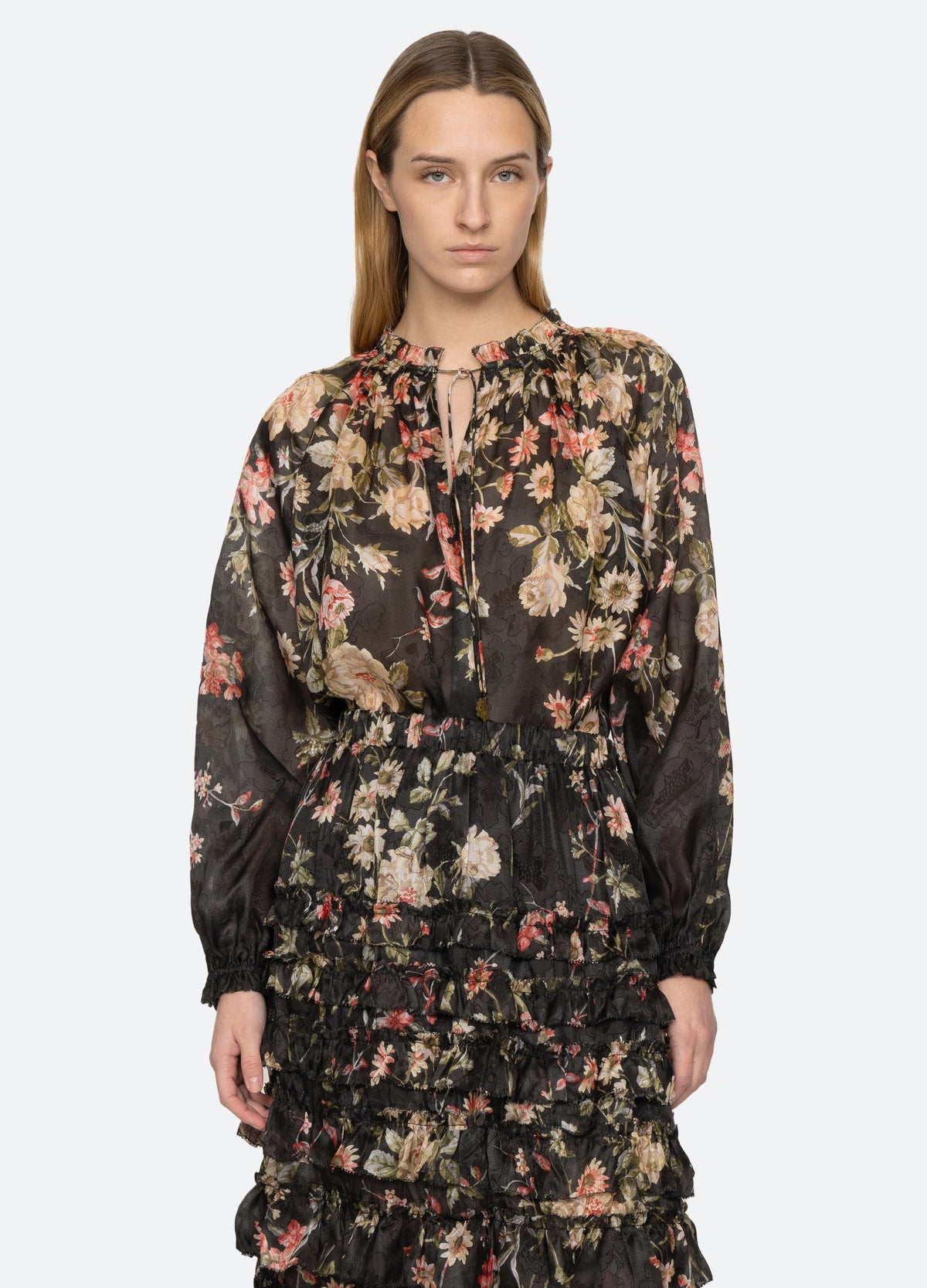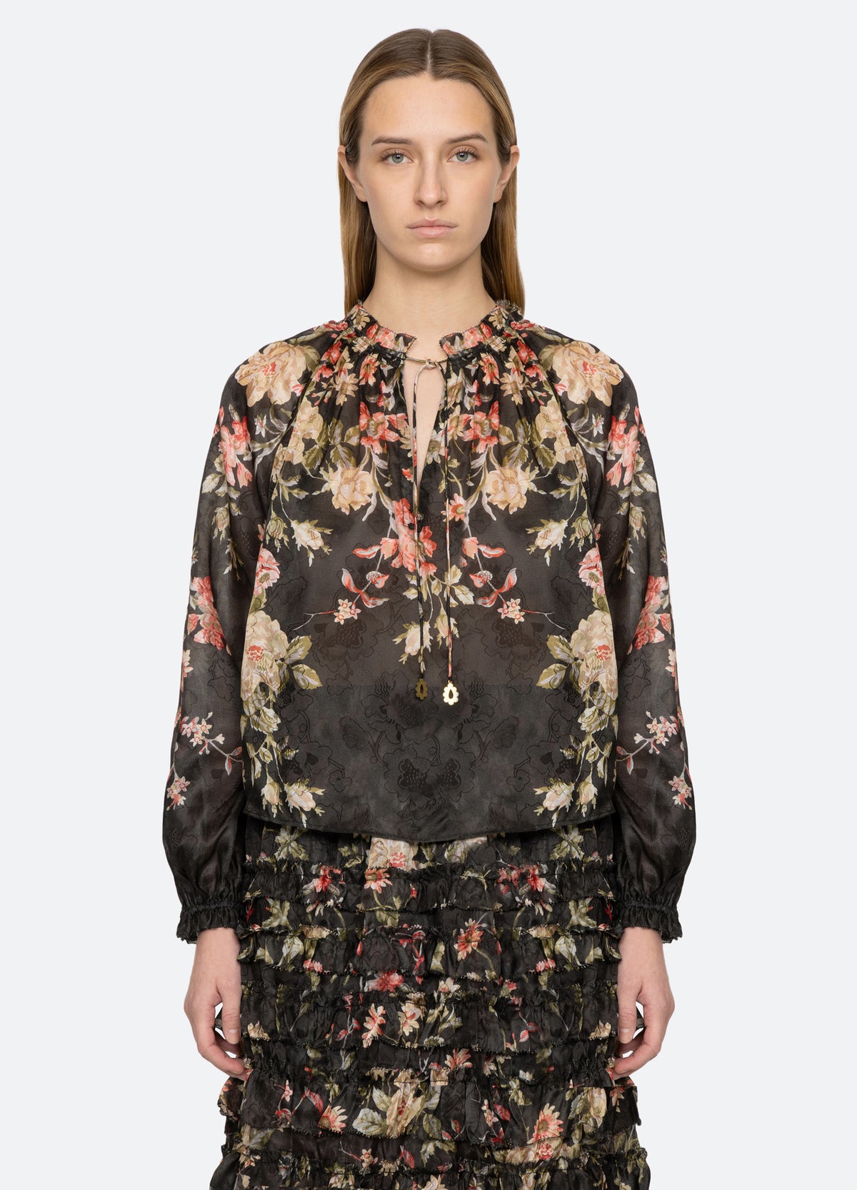 The Jolie floral print top blends soft structure with subtle romance. Featuring an allover floral motif, it's finished with voluminous puff sleeves and refined tassel ties adorned with charm accents. A thoughtful balance of detail and simplicity.