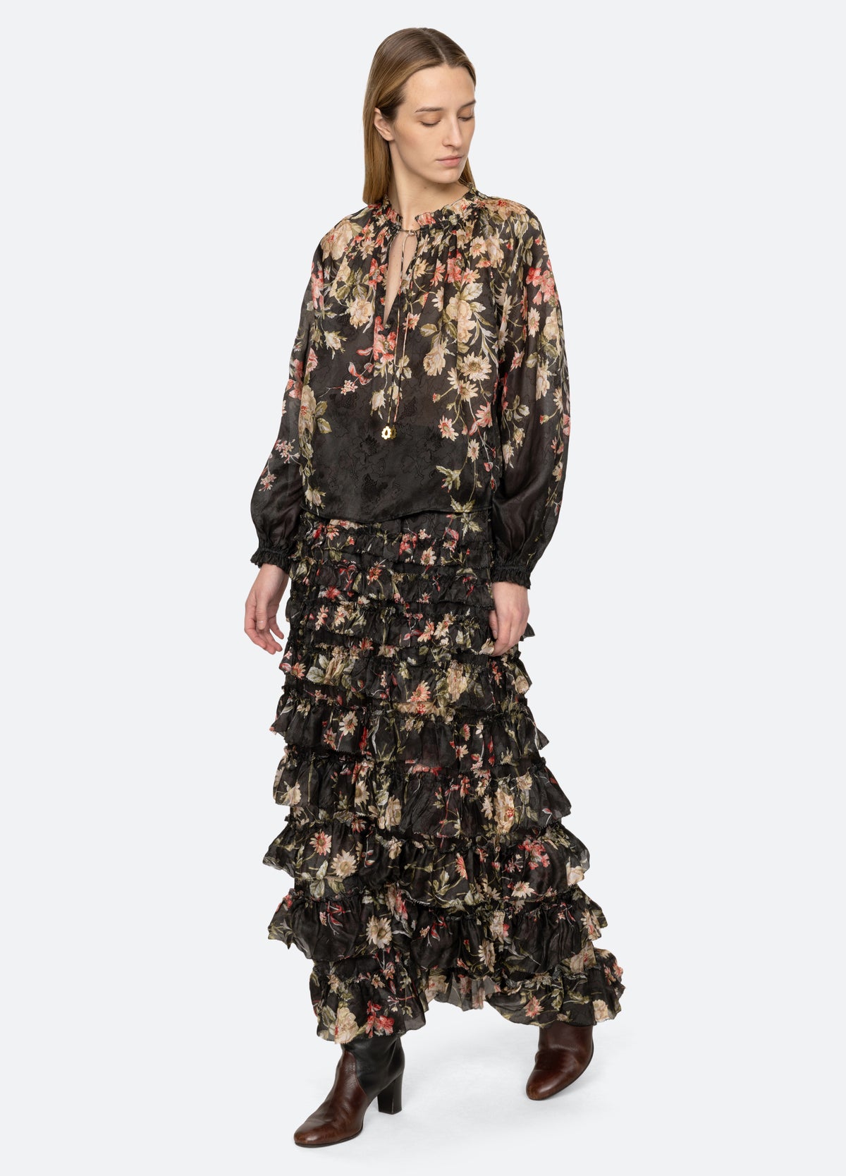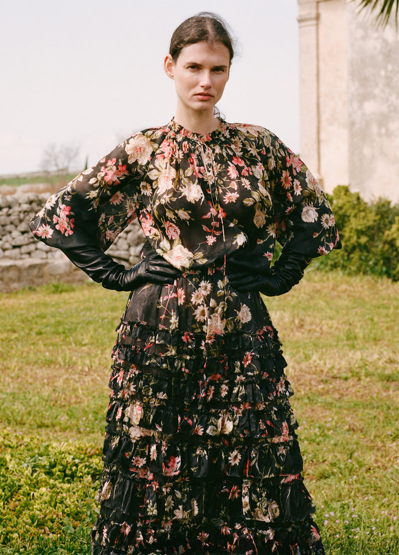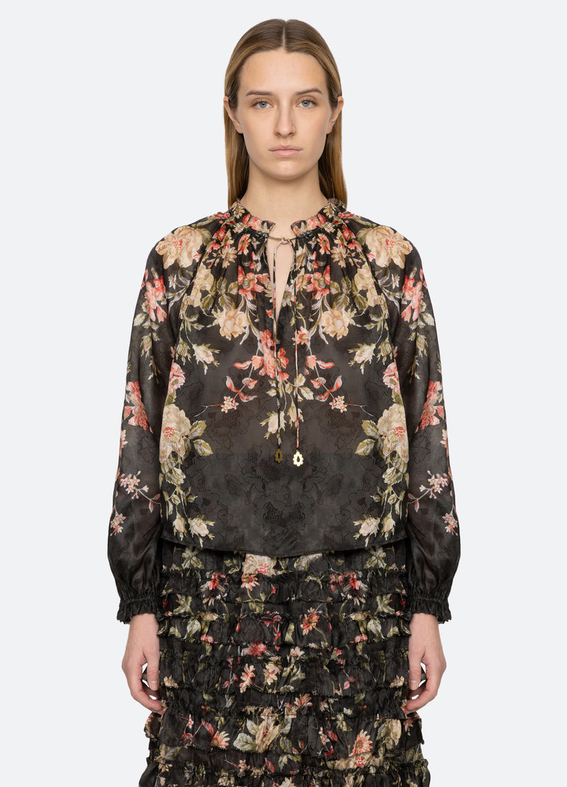 The Jolie floral print top blends soft structure with subtle romance. Featuring an allover floral motif, it's finished with voluminous puff sleeves and refined tassel ties adorned with charm accents. A thoughtful balance of detail and simplicity.