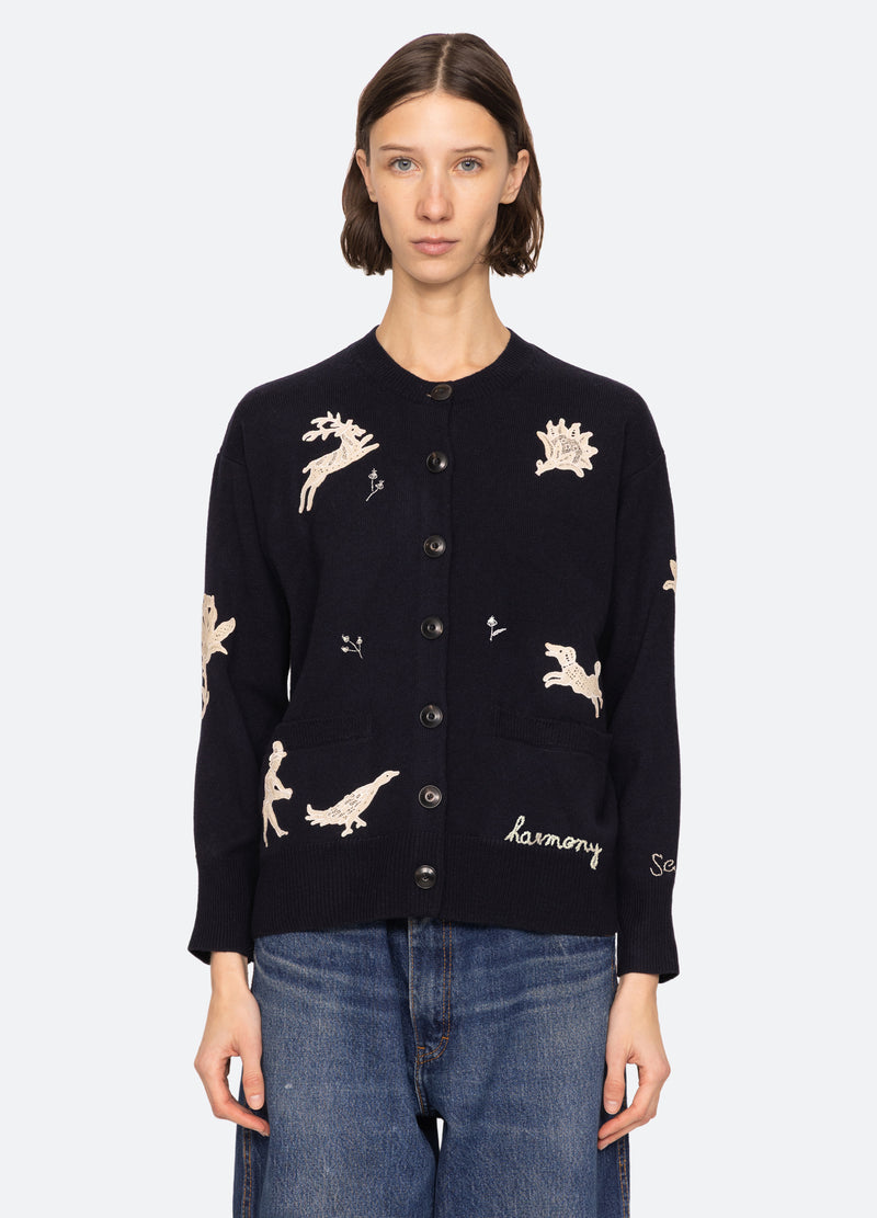 The Mika applique cardigan blends whimsy with warmth in a timeless silhouette. This classic piece is adorned with folkloric lace motifs and finished with detailed embroidery, bringing storytelling charm to everyday layering.